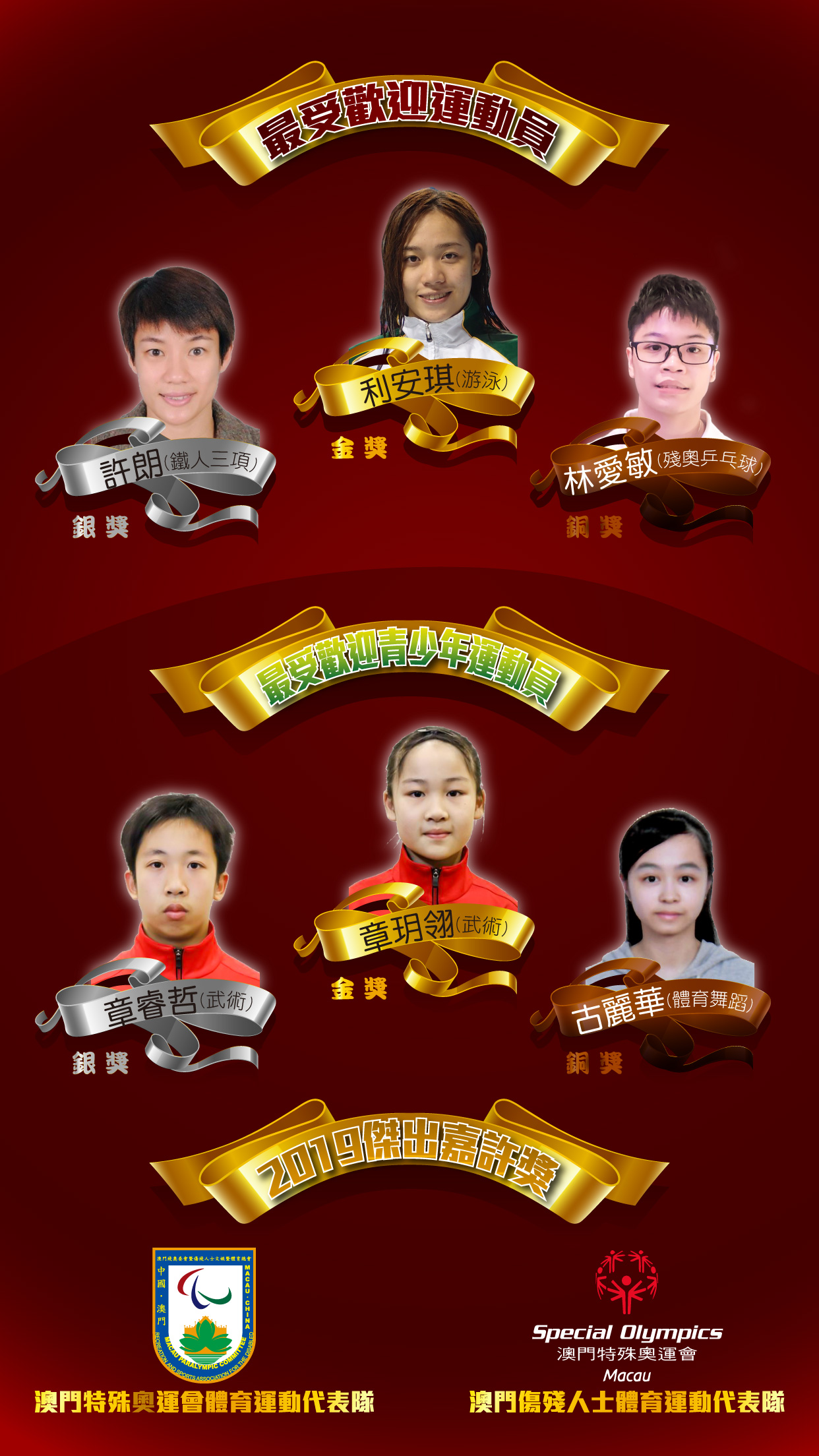 「最受歡迎運動員」「最受歡迎青少年運動員」「傑出嘉許獎」